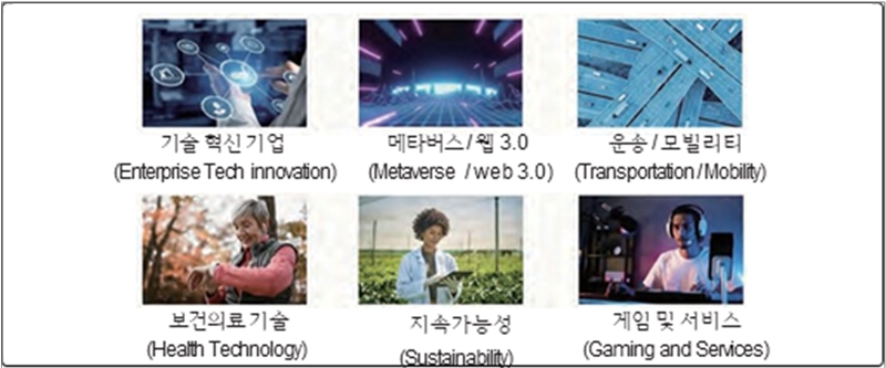 1) 6개 분야의 주요 기술 트랜드사회적 2023년 세계 최대 규모의 글로벌 전시회 CES1)에서 6개 분야의 주요 기술 트렌드를 제시했다. 지속가능성(sustainability) 영역의 내용을 보면 ESG 부분 중 환경과 관련된 기술을 제시하였음을 알 수 있다.