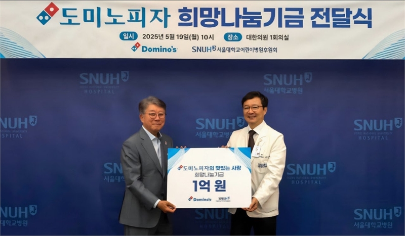 세계적인 배달 피자 브랜드 도미노피자가 지난 19일 서울대학교어린이병원에 1억 원의 기부금을 전달하며 20년 넘게 이어온 사회공헌 활동을 다시 한번 실천했다.