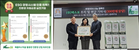 2024년 7월에는 ESG경영의 초석을 마련하기 위해서 ISO9001과 ISO14001 국제인증을 취득하였고, 자연에서 얻은 밀짚과 내추럴한 지푸라기 무표백 컬러의 펄프를 원료로 사용한 친환경 키친타월, 페이셜 미용 갑티슈, 리필 티슈, 물티슈와 나무 펄프를 줄여 100%의 갈대로 만든 친환경 에코지 갈대 엠보싱 토일렛 롤 휴지 등을 생산하여 국내에 유통하는 소비자만을 위한 진실되고 건강한 국내 유일한 소상공인 기업이다.