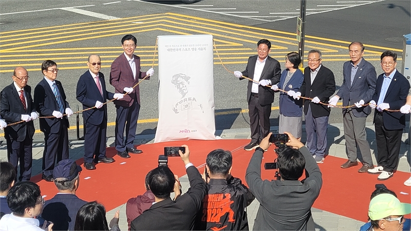 이날 행사에는 서윤복기념사업회 오천진 회장(수빈운수 대표)과 숭문중·고 동문 및 지역주민 등 관계자들이 참석해 대한민국 마라톤 영웅 고(故) 서윤복(1923~2017) 선수를 추모했다.